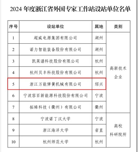在全球化與科技創(chuàng)新的驅(qū)動(dòng)下,浙江省外國專家工作站成為吸引國際高端人才、推動(dòng)企業(yè)創(chuàng)新發(fā)展的重要平臺。自2020年《浙江省外國專家工作站管理辦法》實(shí)施以來,紹興市在吸引外籍專家方面取得了顯著成績。截至目前,紹興市已有6家單位獲批為省級外國專家工作站,位居全省前列。 2024年,浙江萬能彈簧機(jī)械有限公司榮...